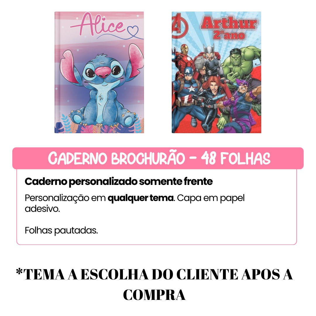 Caderno Brochurrao 48 folhas – SOMENTE FRENTE